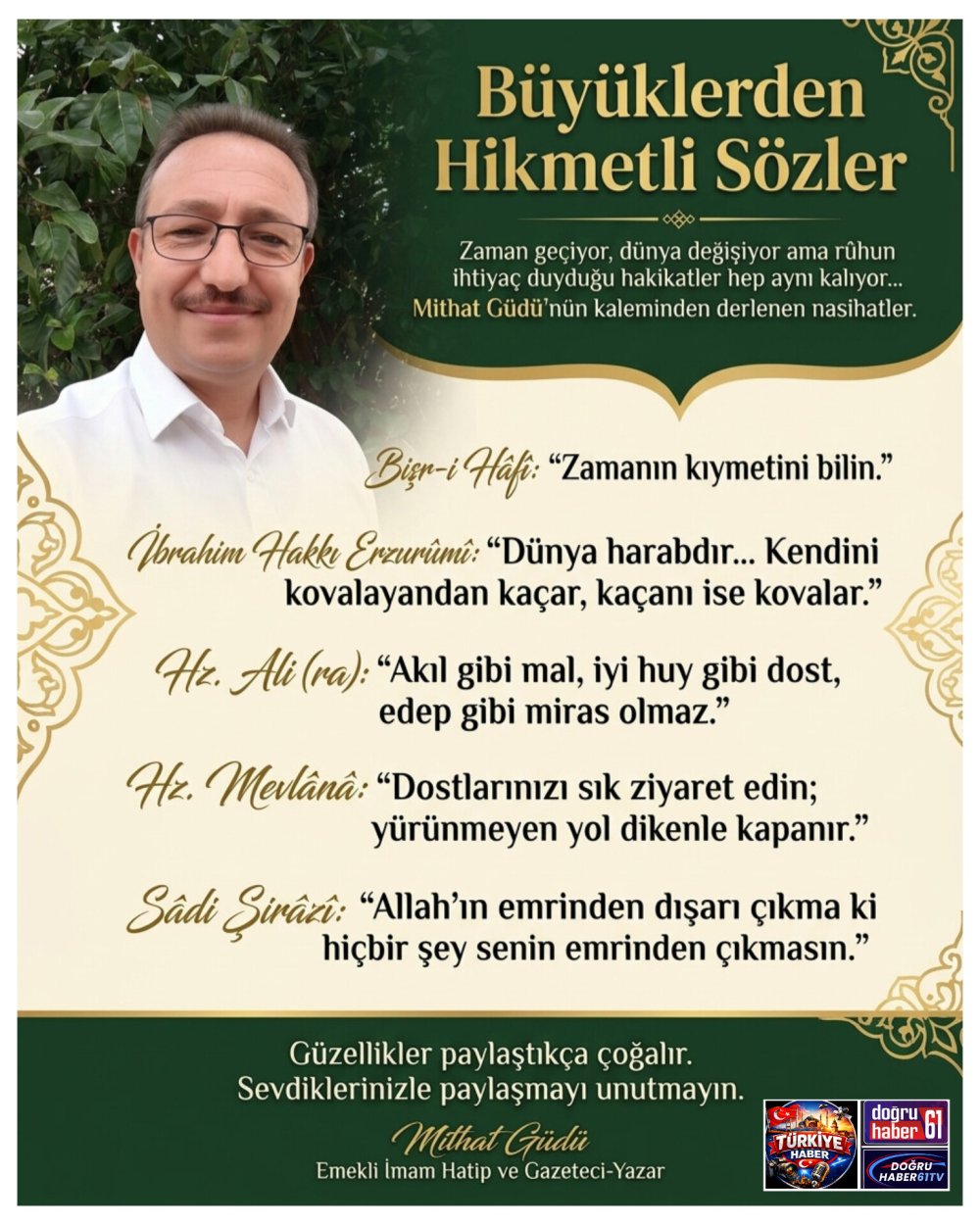 Bu öğütlerin hayatımızda karşılık bulması duâsıyla...
